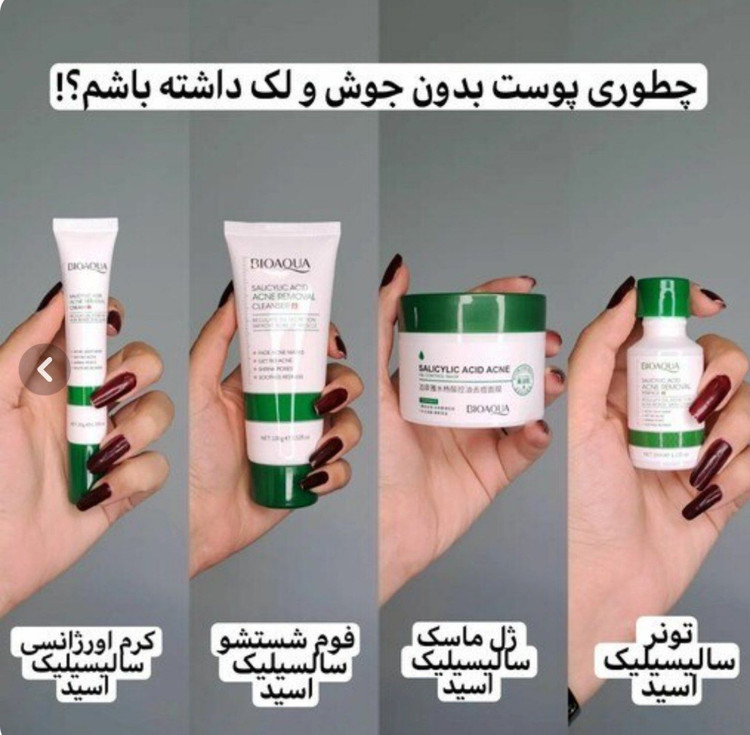 سالیسیلیک اسید موجود در این محصولات با لایهبرداری و تنظیم چربی پوست، به بهبود ظاهر پوست و کاهش جوشها کمک میکند.